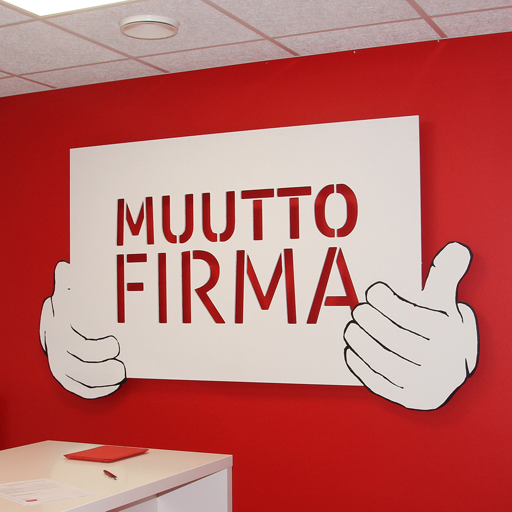 Jokainen kyltti suunnitellaan vastaamaan asiakkaan brändi-ilmettä, typografiaa ja visuaalista kokonaisuutta.