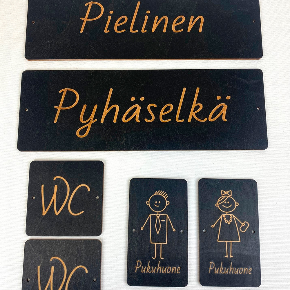 Valmistamme kyltit korkealaatuisesta koivu- tai tammivanerista, jotka yhdistävät luonnollisen ulkonäön, mittapysyvyyden ja hyvän kestävyyden. Materiaalit soveltuvat tarkkaan laserleikkaukseen ja -merkintään, mikä mahdollistaa siistit reunat, toistettavan laadun ja yksityiskohtaisen lopputuloksen. Kyltit voidaan myös maalata brändivärien mukaisesti. Tarvittaessa toteutamme myös suurikokoisia kylttejä ja useamman osan kokonaisuuksia.